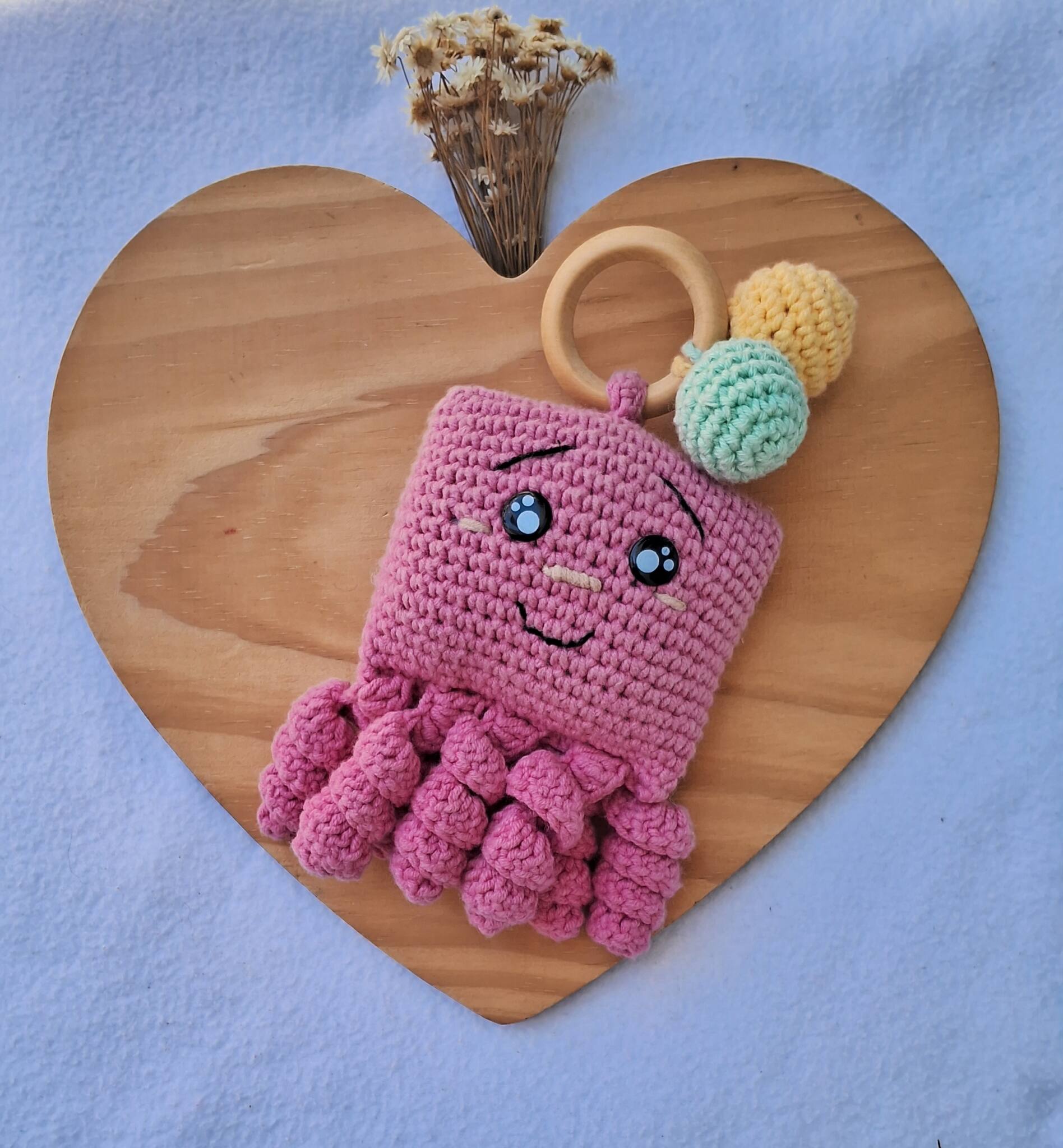 Polvinho rosa, presente ideal para os bebês, com chocalho e mordedor, feito com linhas 100 % algodão ou mista e enchimento com fibra siliconada. Pode ter alteração de tamanho devido a confecção manual.